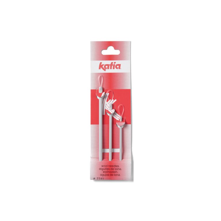 Set of three aluminum wool needles with different thicknesses and sizes to sew knitwear and join crocheted pieces. Made of aluminum, these wool needles slip easily between the stitches of any project. The strong nylon loop that forms the eyes of the sewing needles allows a quick and easy threading of thick yarns. Use these sewing-style needles to weave in ends of your work, to embroider in stocking stitch or add details to your crochet projects.