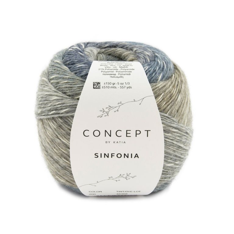 This beautiful single-ply Alpaca/Cotton yarn blend will have you engaged. With its Ombre effect, watch how your projects come to life as the colors blend into one another. With Sinfonia, you can create beautiful year-round accessories for the entire family. This Laceweight yarn is versatile and timeless (thanks to its cotton content and high performance). Make a knitted shawl or scarf with just one ball of Sinfonia by Concept Katia.