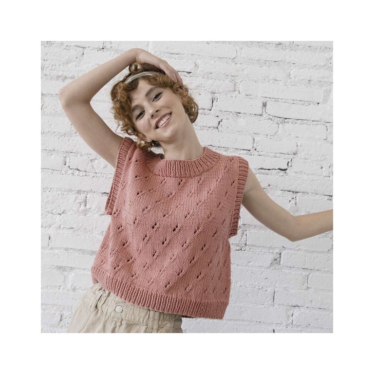 You’re one kit away from knitting a sleeveless top in the round with this charming lace pattern. This summer, show off your new knitted top, thanks to the Ura Tee Kit designed by Ana Martín for the Kits & Fun Happy Summer. In xamalo85’s Ura Tee Kit you’ll find balls of Easy Knit Cotton, circular knitting needles with an interchangeable cord, a tapestry needle, and a safety pin. The kit also includes a leaflet with the knitting pattern for 4 different sizes and a QR code to easily access the video tutorial.