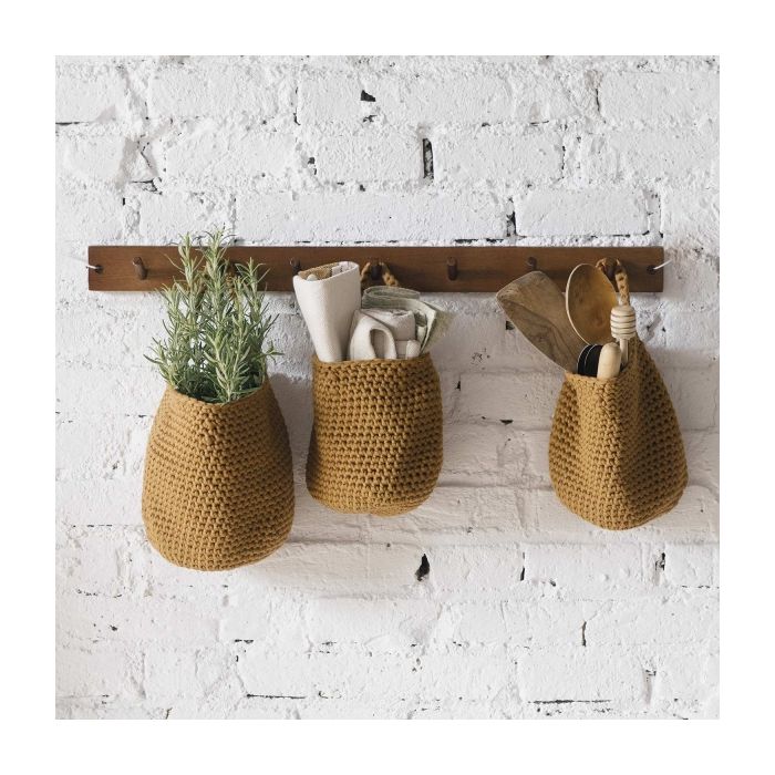 Crochet some practical hanging baskets to organize your kitchen, bathroom, hallway, or wardrobes, thanks to the Volterra pattern designed by @bykaterinadesigns.Easily shape each terracotta-colored basket with a handle for hanging and enjoy the softness and durability of Katia Homemade. Without a doubt, a useful, versatile, and customizable décor idea designed to enjoy crochet on holiday with all our Summer's patterns.