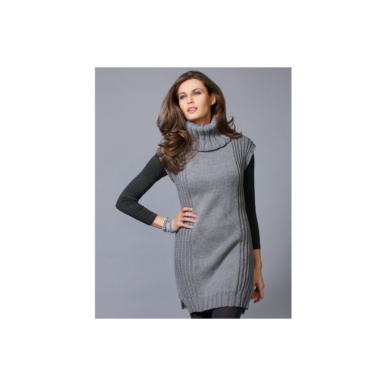 Featuring short sleeves and a high roll neck, this woman's dress knitting pattern is perfect for inbetween seasons. Using a 3X3 rib stitch, this dress can be creating in sizes S - L.