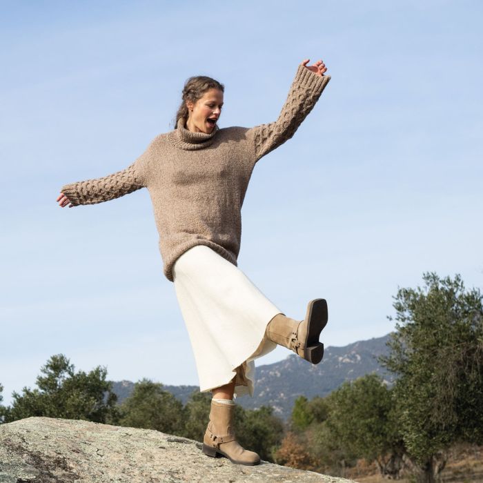 Combine elegance and comfort in this high neck sweater pattern for women. Knitted in stockinette stitch, it features original wide sleeves in a honeycomb stitch. The Alpacotton Natural Colors yarn from Concept by Katia makes this oversized sweater soft, light, and very warm. Ideal for transforming any winter outfit into a spectacular ensemble. Knit this beautiful sweater and dazzle in your unique style!