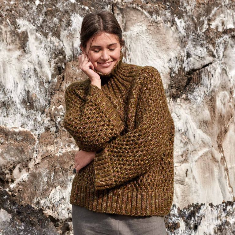 Discover the comfort of this wide turtleneck sweater pattern, knitted with soft Cotton-Merino Tones by Concept by Katia. The stitch pattern creates a subtle honeycomb effect, and the raglan sleeves make this sweater special. Perfect as a wardrobe staple, it combines style and warmth. Make your own and look spectacular!