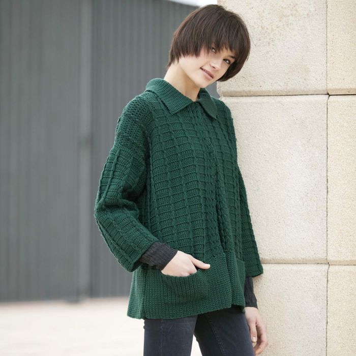 Stylishly design and crochet this practical crochet jacket. Its unique texture, pockets, and 100% Merino wool from Concept by Katia will make you look sophisticated and modern. Complete your winter wardrobe with this pattern available in PDF format or in the Winter Crochet e-book!