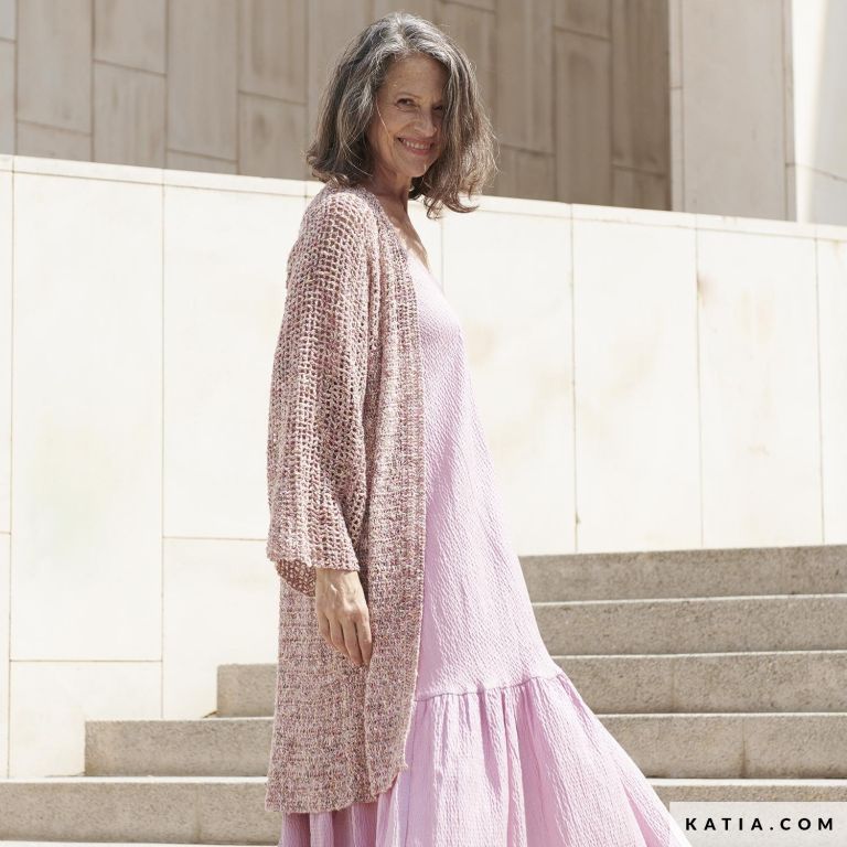Polynesia long crochet kimono This is an easy pattern, suitable for beginners, to make a crochet kimono for summer. Make a long jacket with Japanese sleeves with Polynesia yarn to wear with dresses, long or short looks. Shine bright on any occasion with a modern piece combining two basic stitches.