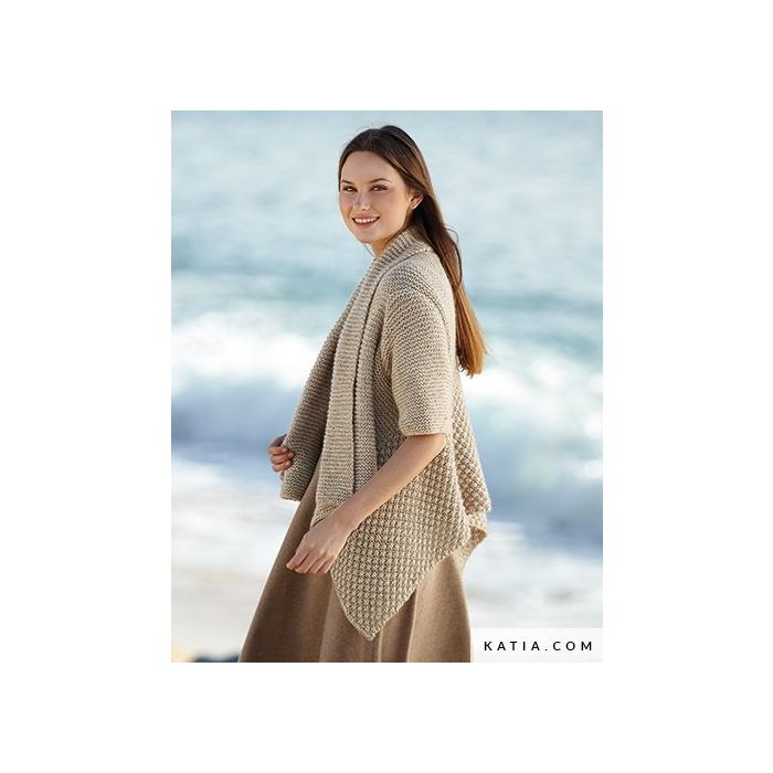Elegant poncho combining back stitch and garter stiches made with a 5.5mm needle. This model can be made with our premium Concept Cotton Merino to create a soft textured poncho, perfect for all year around.