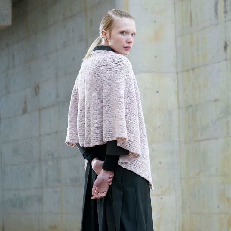 Silky Lace bobble shawl crochet pattern This is a beautiful crochet shawl with a simple double crochet pattern alternating bobbles. This is a “grandmother’s shawl”, an emotional everyday piece. Enjoy Silky Lace yarn in a wide range of colors so that you can find the perfect one for you.