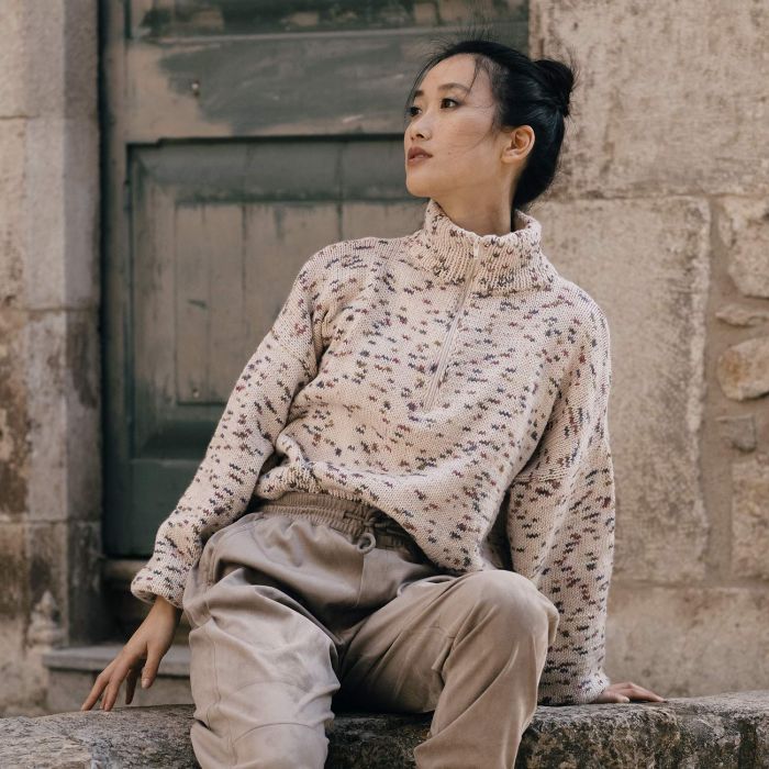 Basic Merino Tweed zipped high-neck sweater kit Follow this kit to knit a Basic Merino Tweed sweater, perfect for giving your daily looks a modern vibe. The piece is really simple but features modern details, like the high neck with a zipper and puffed sleeves.
