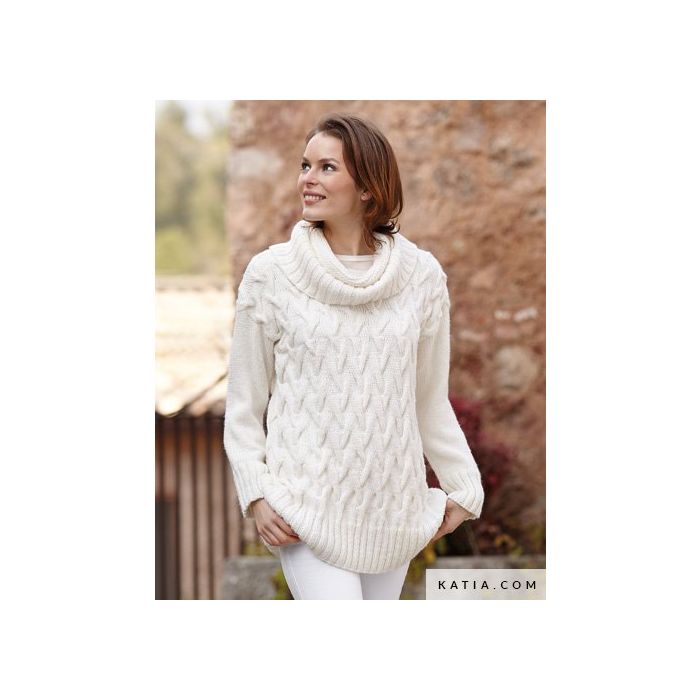 Ideal for advanced knitters, knit the perfect project for your Winter wardrobe. Using the soft Merino Aran, create long sleeves and a high roll neck with this women's jumper knitting pattern.