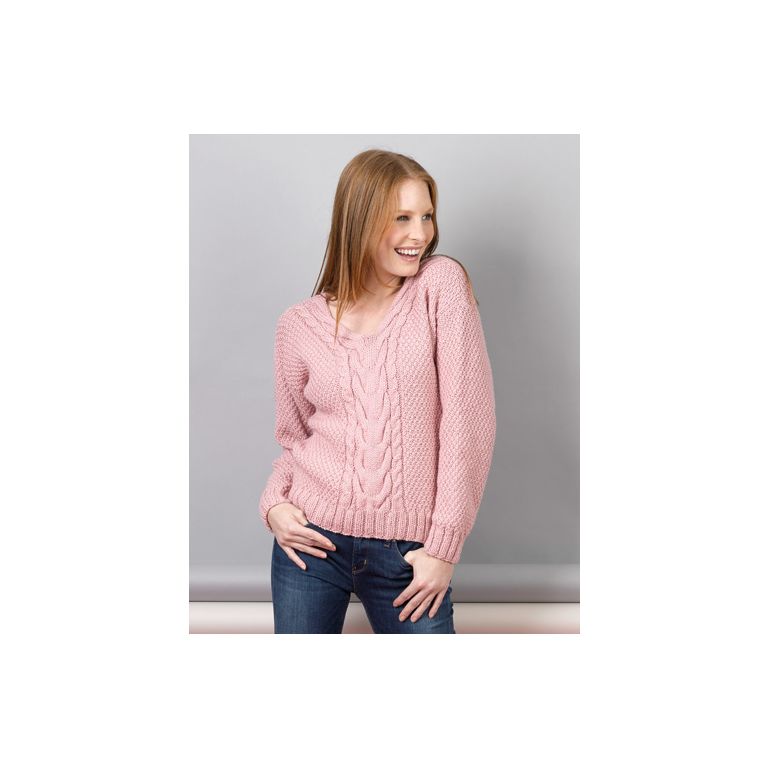 Women's sweater knitting pattern perfect for Spring/Summer. Using Merino Aran and a 2x2 rib stitch, use the pattern to create a contempory everyday jumper.