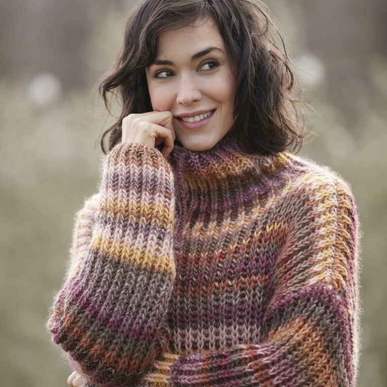 Oversize woman's jumper in fisherman's rib knitted in Azteca. An easy to follow pattern, perfect for Winter.
