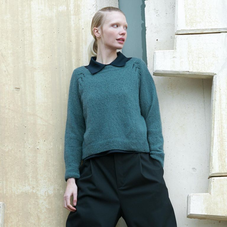 Atenea top-down lace raglan sweater pattern Knit a warm cropped pullover with Atenea by Concept by Katia following this top-down pattern for circular needles. Enjoy a basic sweater with a delicate lace eyelet detail incorporated into the raglan increases.