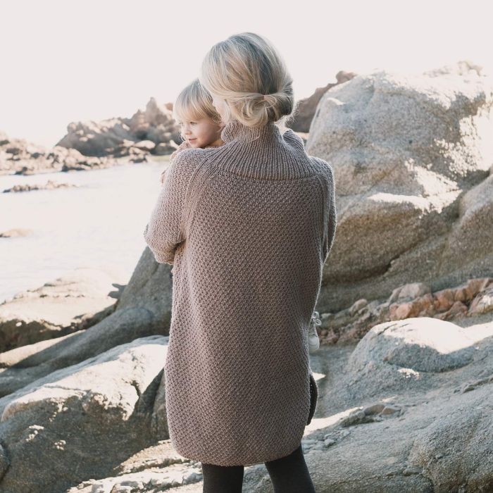Pure Organic Wool double moss stitch dress pattern This dress or oversized sweater knit with Pure Organic Wool is perfect to wear both with modern leggings and casual jeans. Knit in double moss stitch, enjoy this comfortable dress with raglan sleeves and a high neck.