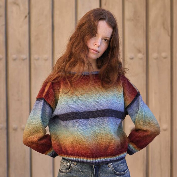 Have fun discovering the color flow as you knit with Concept Symmetric Degradé Socks & More. This simple sweater design allows the yarn’s symmetrical gradient to shine through in every round, resulting in a joyful and balanced garment. Fill your winter with color with this easy stylish project.