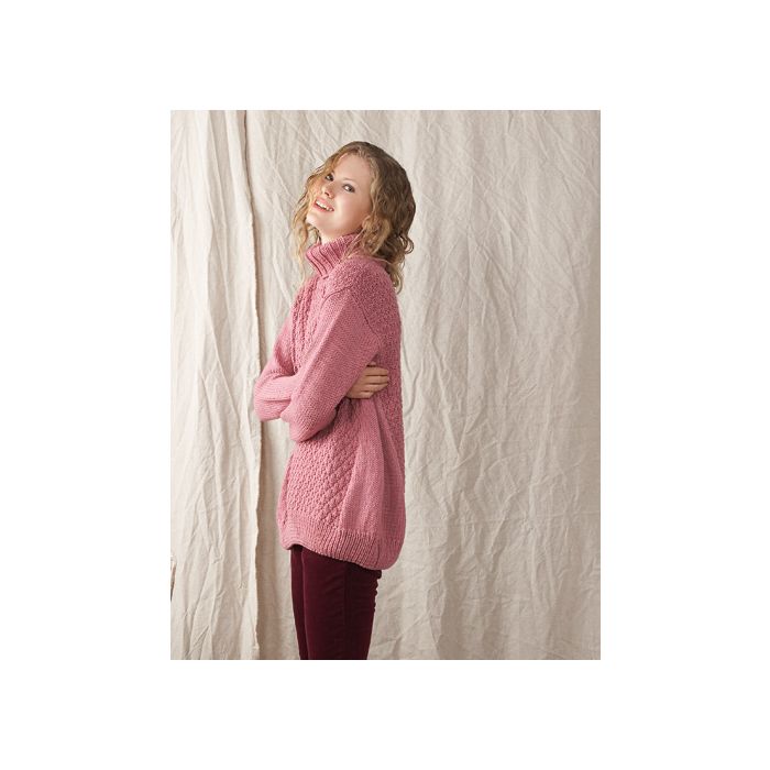 Using a combination of stitches, knit a women's jumper using Merino Sport. Featuring a high neck and long sleeves, this knitting patter is ideal for advanced knitters.