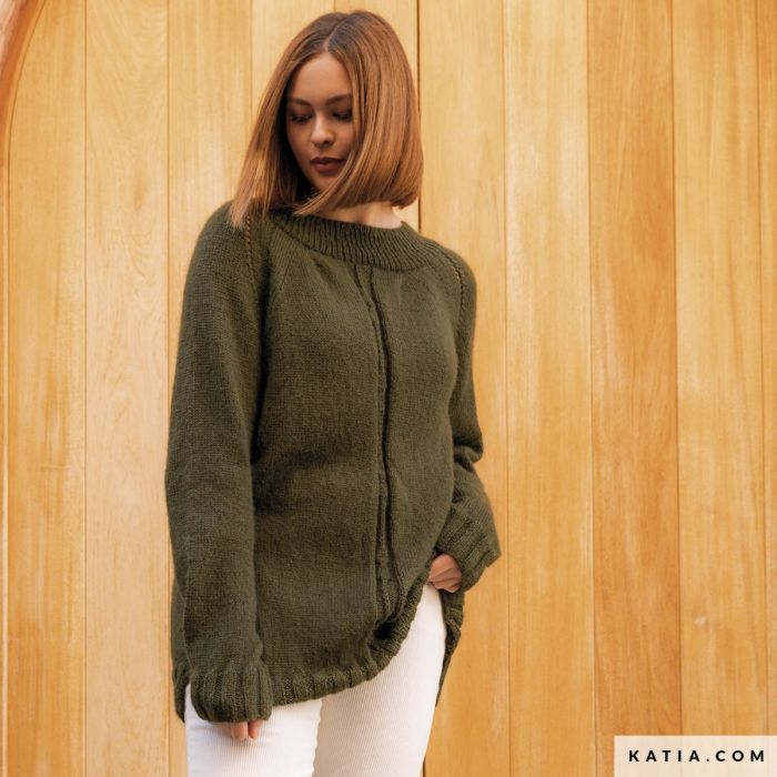 Choose a colour among the Autumn or Winter shades of Soft Gratté to knit this charming jumper with raglan sleeves and an original vertical cabled design on the front. It also features a large ribbed neckline and small lace linear details. A knitting pattern that you can enjoy with plus size options.