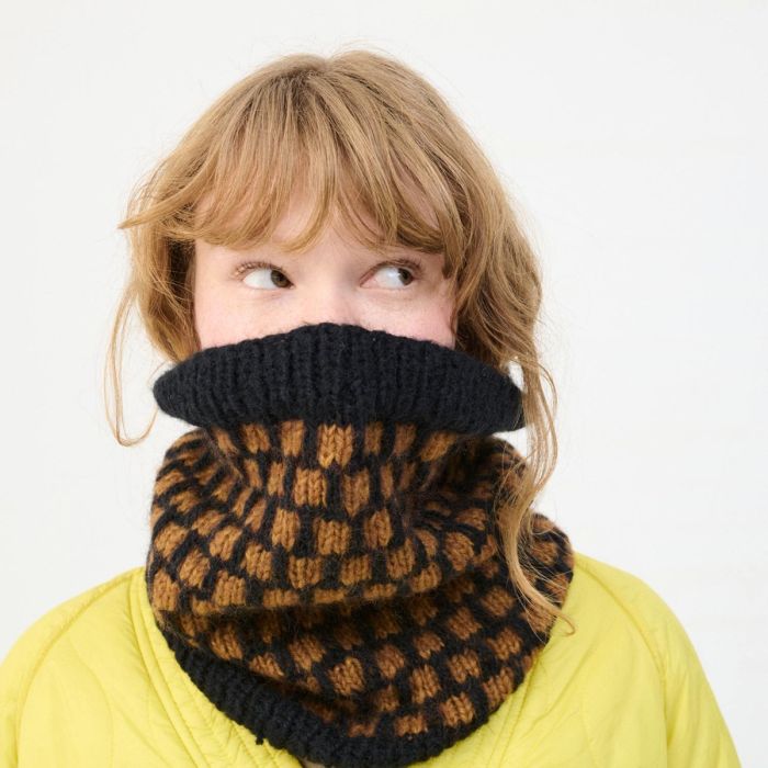 Play with colors using this cowl pattern worked in the round with Katia WOW Gratté, a thick and lightweight yarn with a brushed effect. The two-toned design combines knit stitches and slipped stitches to create an original motif of small squares. A warm and stylish accessory to wear all winter long. Add flow and creativity to your outfits with a project that’s as easy as it is striking.