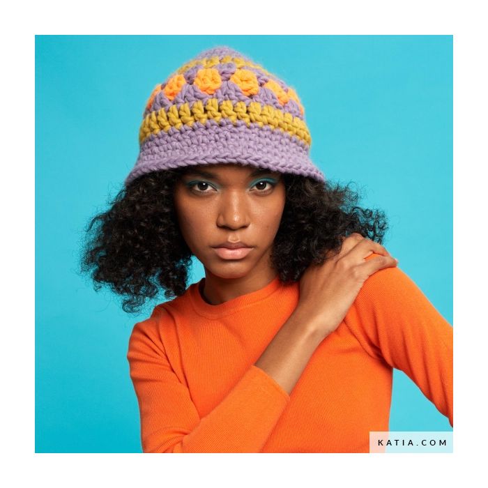 Turn the volume up on your favorite song, while you enjoy each stitch of this Bop crochet hat designed by @studioceliahoste for this Wow! Kit by Katia. Who said that crochet bucket hats are only for summer? Say NO to boring and lifeless winter outfits with a striking, warm wool hat. C The kit includes balls of Chunky from Wow! by Katia in your favorite color combination, a 100% cotton tote bag with the Wow! By Katia logo and everything you want to add to it. With the purchase of the kit, you have access to the Interactive online pattern with step-by-step videos.