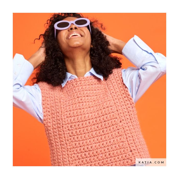 An easy pattern that is fun to make and versatile! Without a doubt, vests are among the top-ranking most trendy garments in the latest seasons. This fall, crochet the Highkey vest designed by @studioceliahoste, a must-have for fans of nineties fashion or minimal looks. This vest is extremely versatile if you like playing with layers, you’ll see! The kit includes balls of Chunky from Wow! by Katia in your favorite color combination, a 100% cotton tote bag with the Wow! By Katia logo and everything you want to add to it. With the purchase of the kit, you have access to the Interactive online pattern with step-by-step videos.