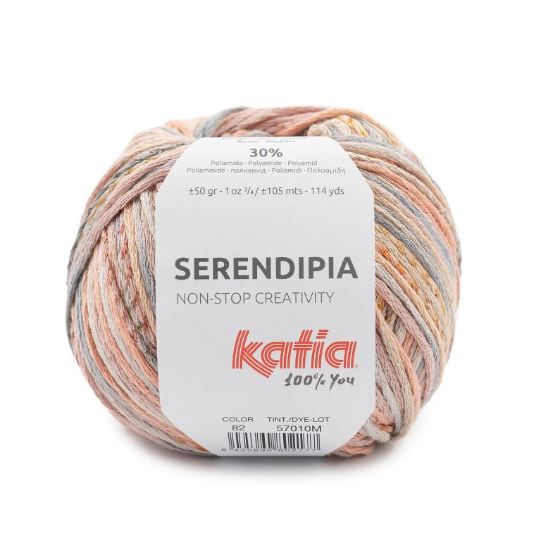 Serendipia is an elegant fantasy tape yarn with a luminous multicolor effect. Enjoy this cotton-based yarn with polyamide with sparkles throughout. Easily knit the most sophisticated garments with Katia Serendipia thanks to its consistent structure.