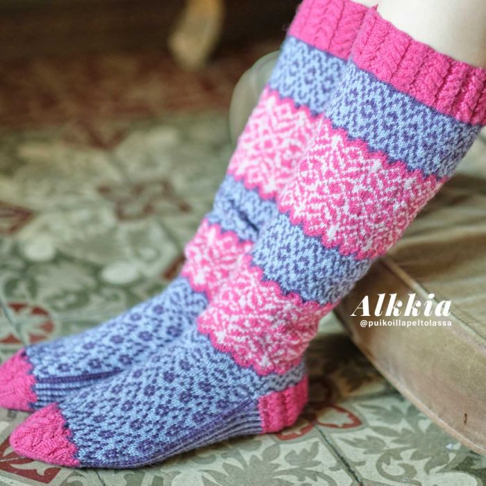 Alkkia Knit Socks in Jacquard Stitch Pattern by @puikoillapeltolassa - A/W - Advanced (5022-1)