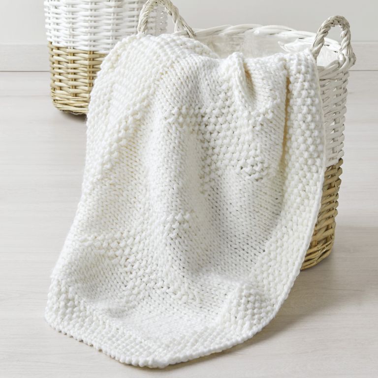 Infant's blanket with a relief stitch star design, knitted on straight needles with 6 balls of Katia Big Merino. This is the perfect cover to wrap up the little star of the household during the cold winter months. MEASUREMENTS: Approx. 31 1/2” x 31 1/2”