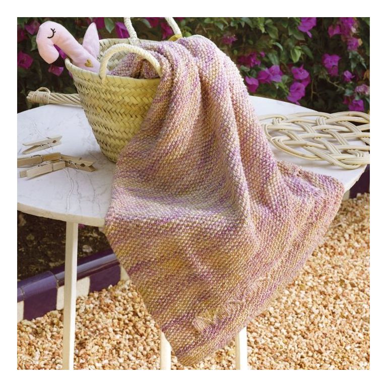 Soft multicolour baby blanket in moss stitch. MEASUREMENTS: Approx. 21 5/8” wide x 27 1/2”