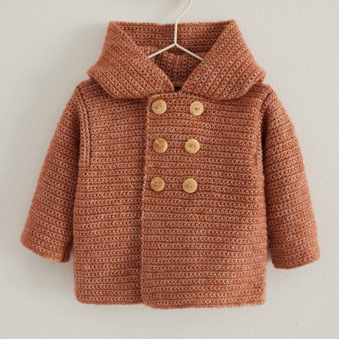 This hooded coat pattern is easy to crochet and perfect for beginners. This crossover coat crocheted in single crochet provides warmth and softness to your baby throughout the winter. Get the pattern today to start crocheting this beautiful coat with Cotton-Merino Fine by Concept by Katia!