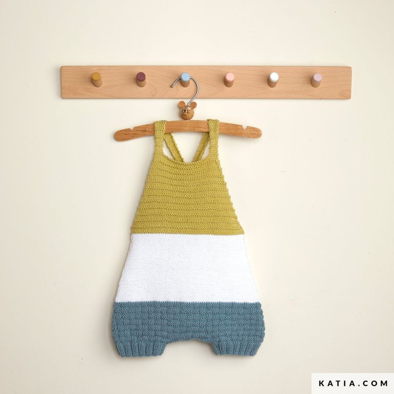 Combine 3 colors of Fair Cotton in this summery baby garment: a strappy romper. As well as 3 colors, this pattern combines 3 stitch textures to enjoy while knitting. Place your trust in the coolness and softness of the best 100% cotton, Fair Cotton, with a knitted design available for sizes 3 to 24 months.