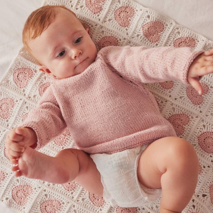 Knit this delicate baby sweater with Comfort Cashmere by Concept by Katia, a luxurious blend of cotton and cashmere. Constructed bottom-up, the raglan sleeves in this design feature an elegant cable motif. With practical buttons on the back, it’s perfect for newborns up to 12 months. Enjoy every stitch and connect with the slow life.