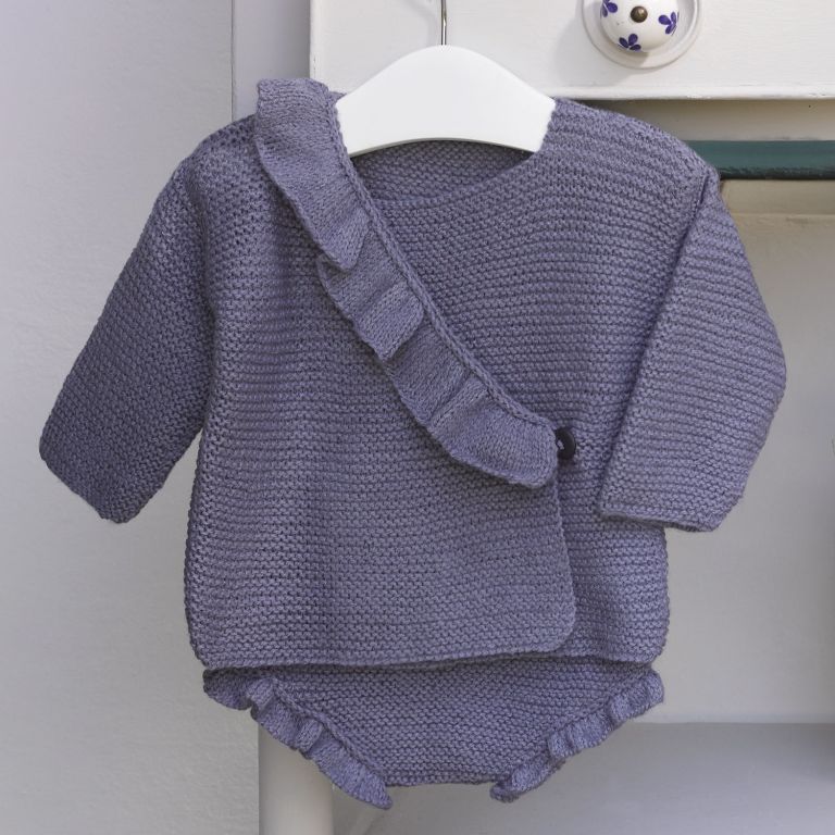Knitted baby jacket and culottes with frills. Garment can also be made with MERINO BABY