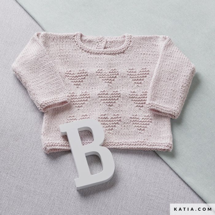 Knit this delicate newborn top with garter stitch hearts. We recommend Sea cell Cotton, a hypoallergenic and biodegradable yarn that is good for your baby’s skin. Available for sizes newborn to 3 months.