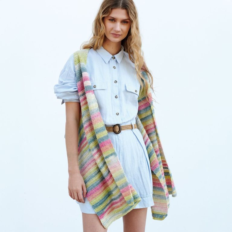 Crochet a stunning waistcoat with our new Äiti Socks yarn. Let your creativity flow with this multicolored fiber, perfect for any season.