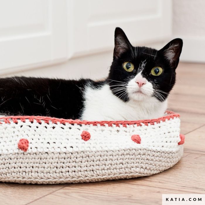 Crochet a doughnut bed for cats and small dogs.