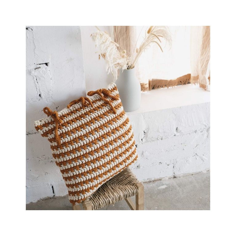 Learn how to crochet a striped square cushion with a tie closure thanks to the Firenze Kit designed by @bykaterinadesigns. This kit contains everything you need to make an easy crochet cushion: balls of Homemade, a crochet hook, fiber fill for the stuffing, a leaflet with the crochet pattern and a QR code to access the video tutorial. Create a unique homeware accessory, with an exclusive design by ByKaterina, using soft and cozy Homemade, a tubular yarn that is easy and quick to work with. Enjoy creating practical and decorative DIY ideas for your home this summer. Discover all the Kits & Fun Happy Summer and enjoy a 100% creative summer!