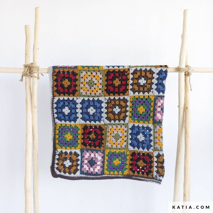 Discover how to make easy and quick crochet squares for blankets with Katia Instagranny. Spend a moment of your day creating one or several granny squares, slowly and hassle-free, using Katia Instagranny, the yarn changes color on its own each round. Enjoy crochet granny square blankets as if by magic!