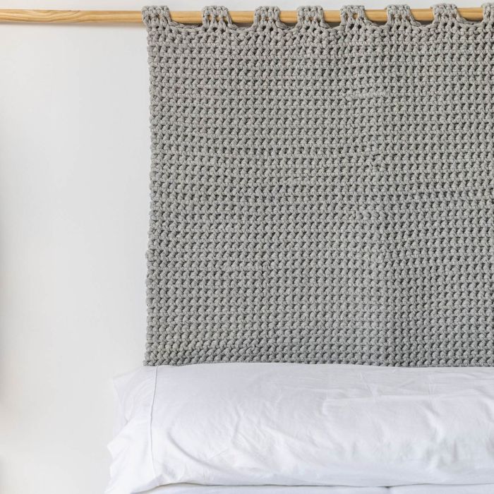 If you’re a fan of minimalist and handmade décor, take note of this crochet headboard made with Big Ribbon. Add warmth to your bedroom with this hanging headboard made with interesting and hypnotic basic stitch textures.