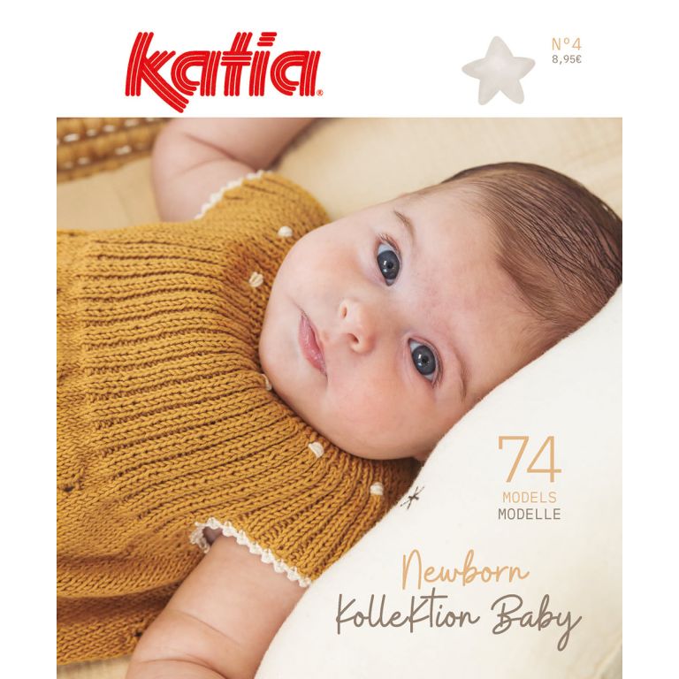 Discover the Katia Canastilla 4 magazine and its 72 adorable baby designs. From blankets to amigurumi bunnies crocheted with Velvet Mini chenille yarn, this collection uses high-quality yarns like Cotton-Cashmere, Merino Baby, and Bambini to create soft and comfortable garments. Ideal for projects filled with tenderness, each design is crafted to wrap your little ones in warmth and style. Knit with love and pamper your baby with handmade creations!