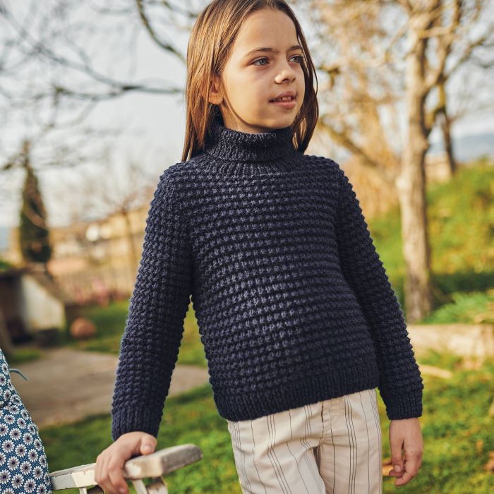 Essential Alpaca fitted textured sweater pattern Create a modern and youthful look for children with this fitted sweater knitted in textured stitch. Made with Essential Alpaca from Concept by Katia —a fine Peruvian alpaca yarn— this pattern is perfect for knitting a warm high-neck sweater, from size 4 to 12 years. An essential garment for your little ones’ winter wardrobe!