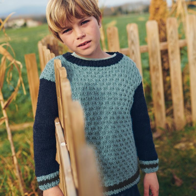 Essential Alpaca children’s textured sweater pattern Get inspired by this modern two-toned sweater for kids. The textured stitch design, knitted with Essential Alpaca by Concept by Katia, an exceptionally soft alpaca yarn, provides your little one with the comfort and versatility they need for their daily looks. The 1x1 ribbed finishes make it the perfect garment for any occasion!