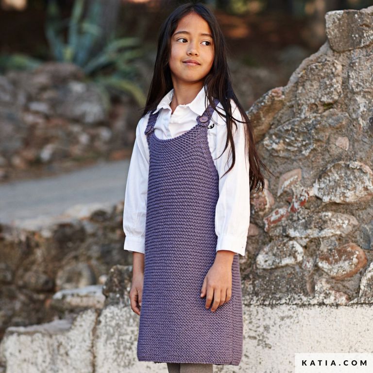 Easy to knit girls dress with straps. This model can be made with MERINO