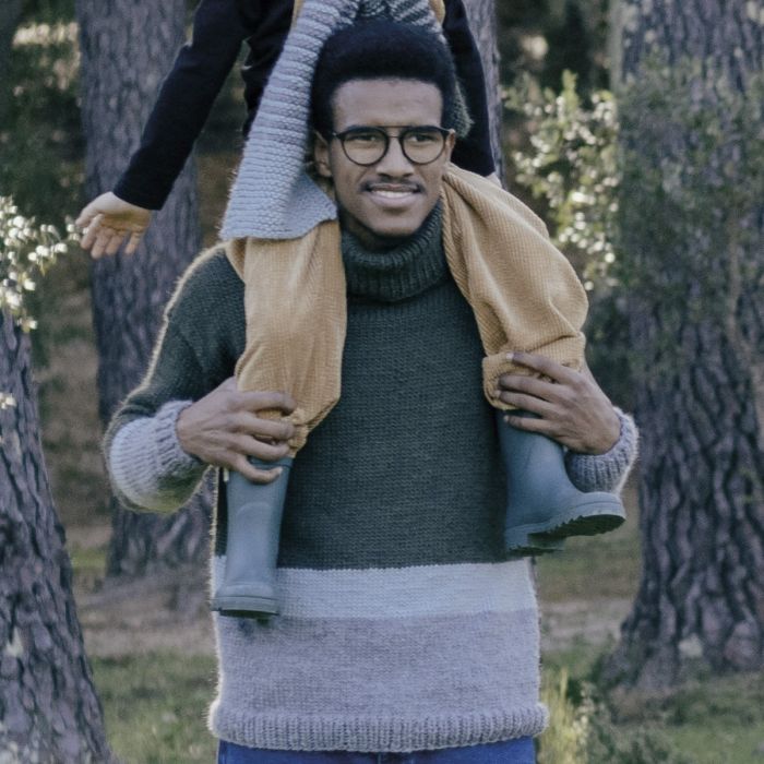 Man's tricolour sweater knitted in stockinette stitch. The simplicity of this model is an advantage when it comes to knitting the pattern. There are no decreases to work and it includes an attractive roll neck collar for the colder winter months. Supreme Merino is a warm yarn with the handle of the best mulesing free merino. Suitable for lightweight garments for the whole family.