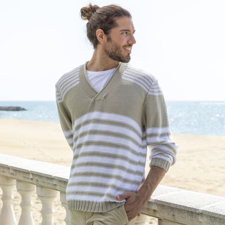 Mens Sweater Knitting Pattern - S/S - Easy - (6165-13)