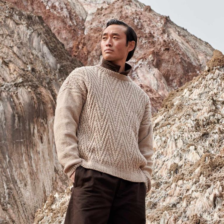This men’s zigzag stitch sweater pattern, knitted with 100% Merino, features straight lines and a round neck. It is a basic and timeless garment. Superwash wool makes daily care easy, and its wide range of colors makes this sweater ideal for pairing with your favorite jeans. Start knitting the new must-have for all your looks today!