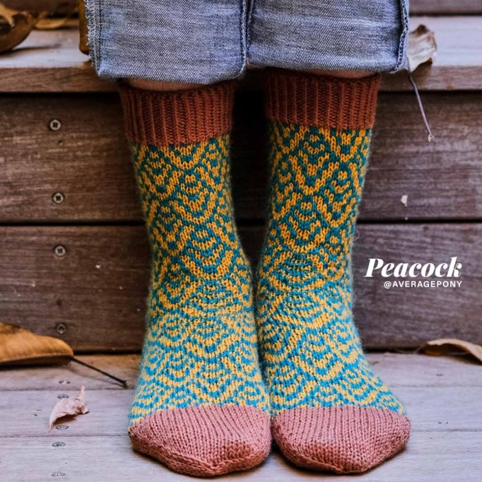 Peacock Jacquard Socks Pattern by @averagepony - A/W - Advanced (5010-3)