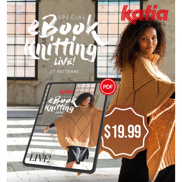 Take Katia Special "Knitting Live" PDF with you, whether it’s on your computer, tablet, or your Smartphone. Download 27 crochet and knitting patterns for all levels. You will find a wide selection of trendy garments: vests, ponchos, sweaters, and jackets for him and her. Get yourself the best of Katia's designs!