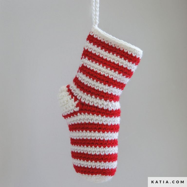 Crochet this stocking style Christmas decoration in a stripe design, perfect for the Christmas tree! Using Merino Aran and Christmas colours, crochet yourself handmade decorations for your home. This in a pattern perfect for beginners.
