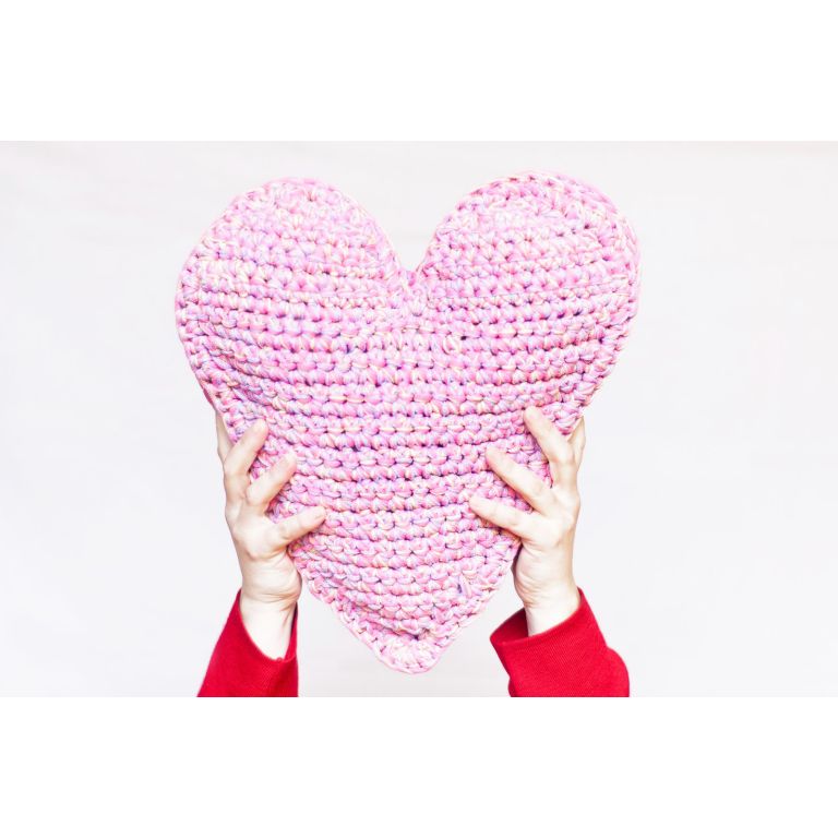 Love at first sight! Download the pattern to crochet this cushion. Only need a few balls of Big Ribbon and a little loving care to decorate your favourite corner of the sofa or bed.