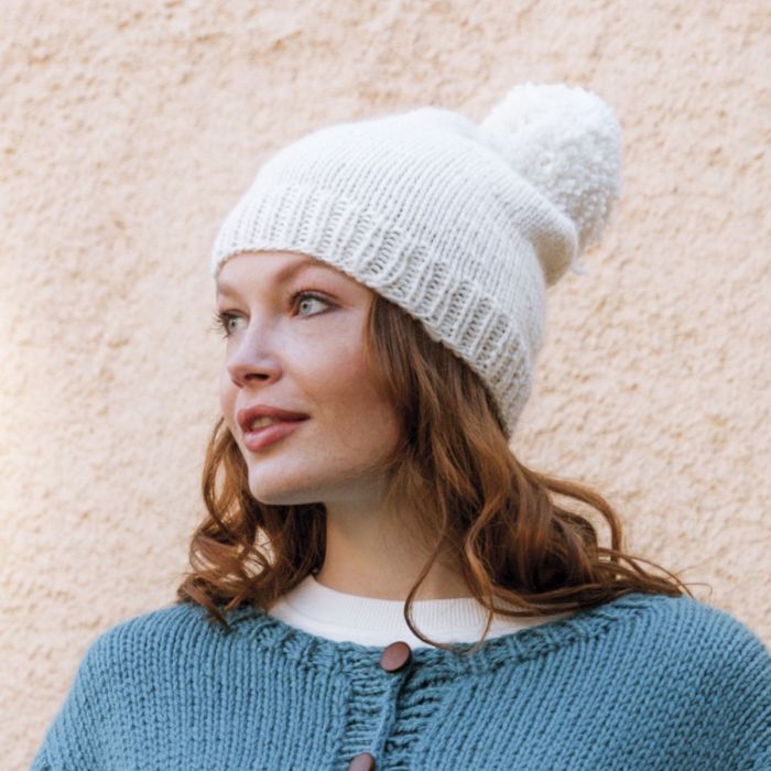 We complete the Back to Basics patterns with a wool hat knit with circular needles, finished off with a large pompom. As always, give it your personal touch by choosing your favorite color: 2A col. 80 / 2B col. 93 / 2C col. 90 / 2D col. 82.