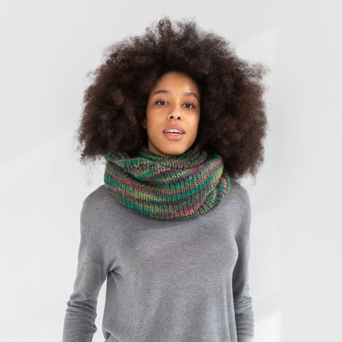 Free double cowl pattern in the round with 3 balls of Flash Turn 3 balls of Katia Flash into a double cowl following a knitting pattern for circular knitting needles. Unwind knitting stockinette stitch in the round and keep your neck warm this winter with a seamless, easy-to-knit accessory.